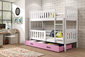 Junior emeletes ágy KUBUŚ 90X200 fiókkal, fehér/rózsaszín