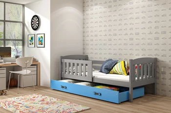 KUBUŚ 80X160 egyszemélyes ágy fiókkal, grafit/kék