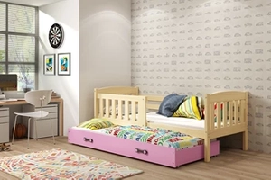 Kihúzható ifjúsági ágy KUBUŚ 90X200 fiókkal, fenyő/rózsaszín