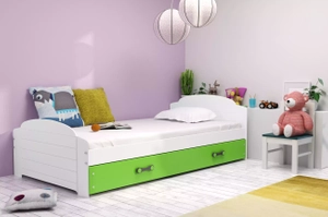 Ifjúsági egyszemélyes ágy LILI 90X200 fiókkal, fehér/zöld