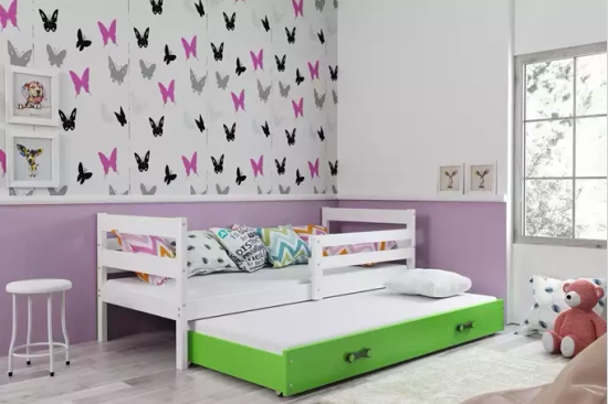 Éric 90x190 ágyneműtartós tiniágy fiókkal, fehér/zöld