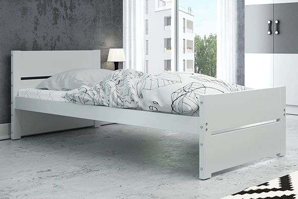 BARTEK egyszemélyes ifjúsági ágy 90x200 matraccal, fehér - a tökéletes modell egy tinédzser hálószobájába! Egyszerű, minimalista, rendkívül letisztult kialakítású, modern és klasszikus hálószobákhoz, valamint vintage vagy akár glamour hálószobákhoz is illik. Könnyen telepíthető, robusztus (teherbírás - 100kg)!) és biztonságos és tartós anyagokból készült, évekig szolgálja a növekvő tinédzsert!