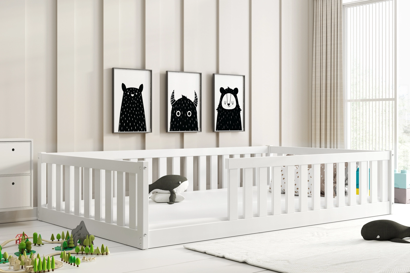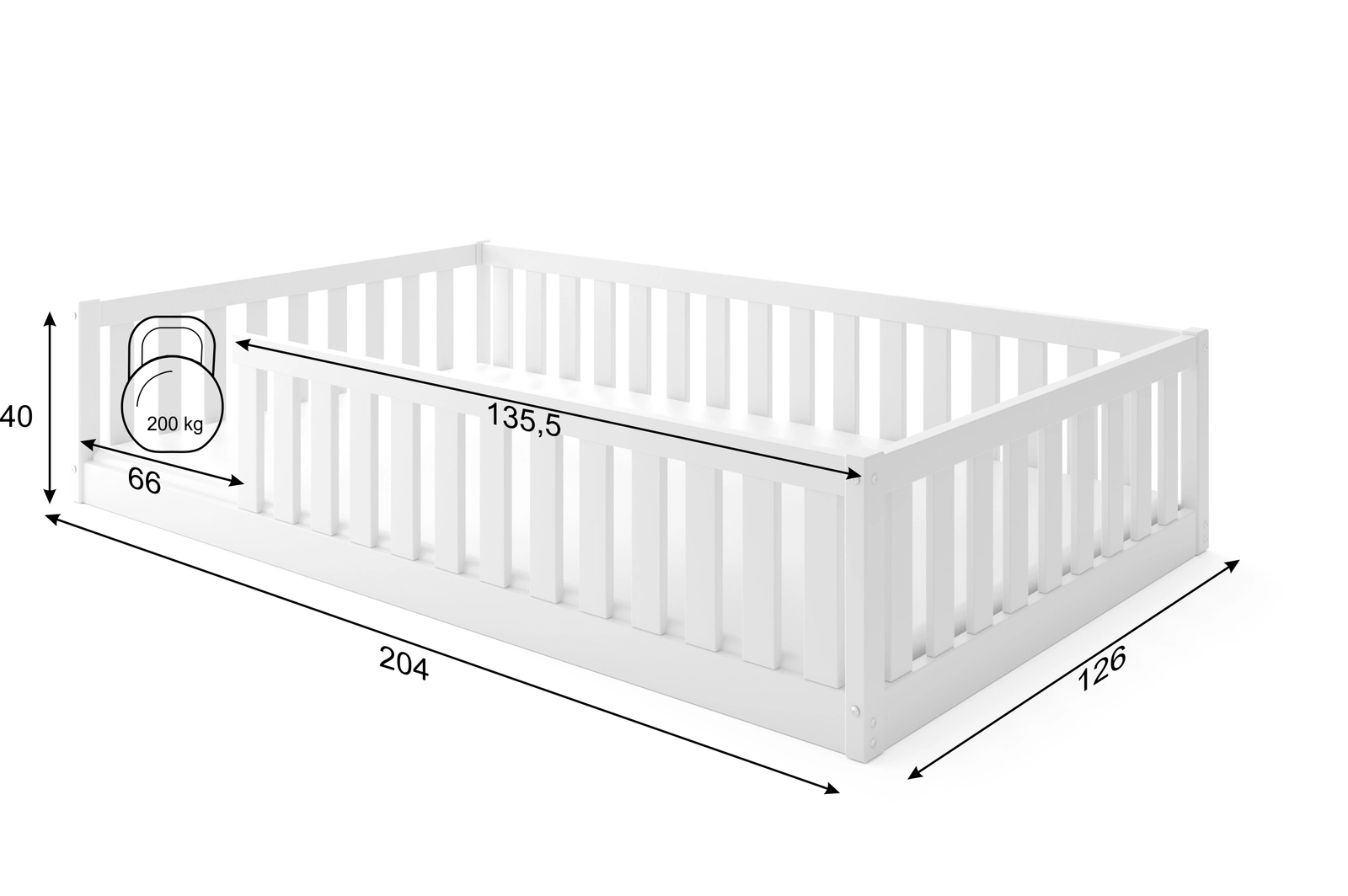 A földszinti gyermekágy 120x200 cm-es alvófelülettel ideális választás azoknak a szülőknek, akik tágas és kényelmes alvóhelyet keresnek gyermekük számára. Univerzális fehér vázának köszönhetően az ágy tökéletesen illeszkedik a különböző falszínekhez és kiegészítőkhöz, így bármilyen stílusú gyerekszobába illeszkedik. A fehér színséma optikailag megnöveli a teret, friss és modern érzetet adva neki.