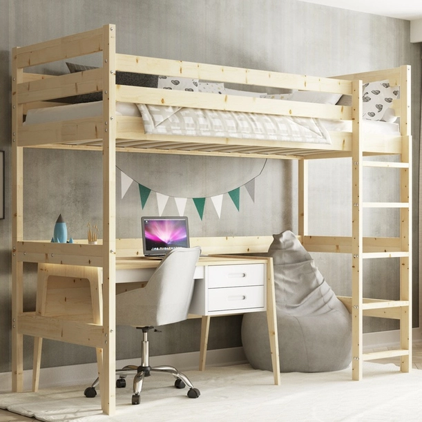 Emeletes ágy ifjúsági - mezzanine természetes fa 90x200