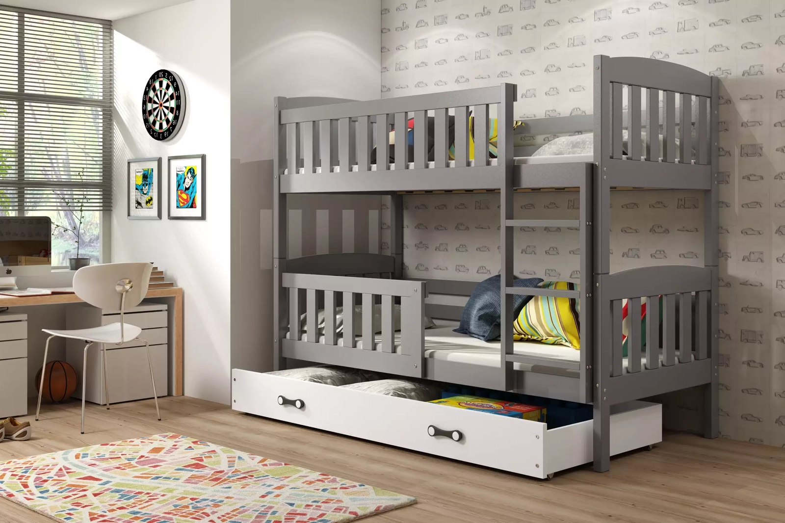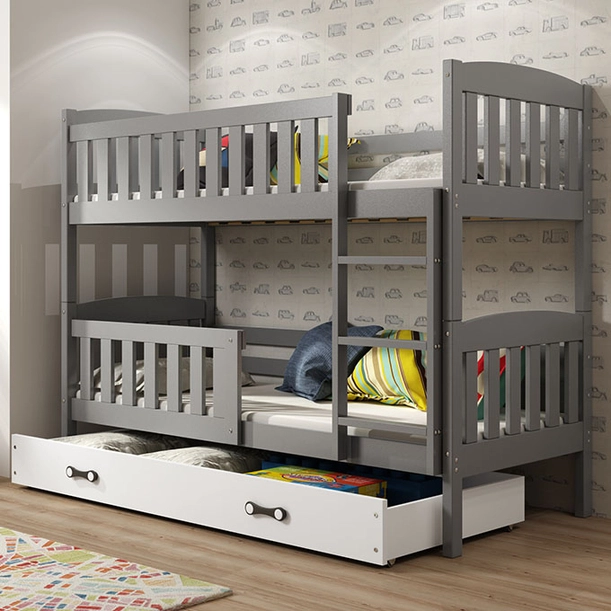 Emeletes ágy KUBUŚ 90X190 fiókkal, grafit/fehér