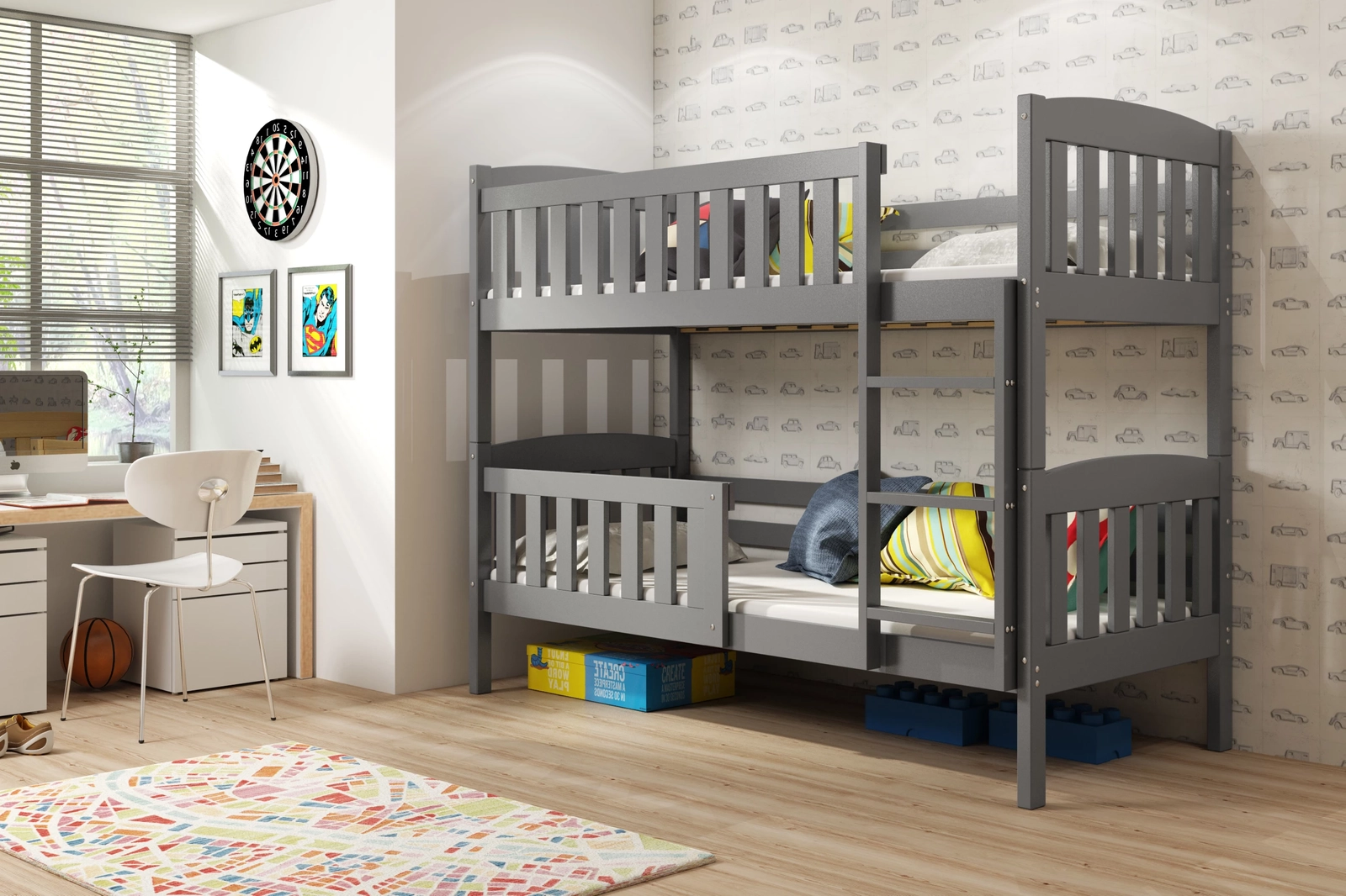 Tisztában vagyunk vele, milyen nehéz egy szobát két, valószínűleg teljesen különböző karakterű és ízlésű gyermek számára átalakítani. Tudjuk, milyen fontos, hogy minden centiméterért meg kell küzdeni... Ezért vezettük be kínálatunkba a Kubuś franciaágyat, amely tökéletes megoldást jelent az Ön elrendezési problémáinak legalább egy részére. A többszintes kialakítás optimális helykihasználást tesz lehetővé, így több hely marad a játékra vagy a tanulásra. A fenyőfából készült és kiváló minőségű acélcsavarokkal megerősített szerkezet stabil és masszív. Ez viszont a gyermekek biztonságát jelenti alvás közben és az Ön nyugodt pihenését. A korlátok felszerelésének lehetősége mindkét szinten a legfiatalabbak iránti tiszteletadás és az értük való aggódás eredménye. Védje még a legelfoglaltabb és legelszántabb gyerekeket is a leeséstől. A korlátok univerzálisak, a szerelés során Ön dönti el a helyzetüket. A rugózott deszkákból készült keret kiváló támaszt nyújt a gerincnek. A grafit színt a fa felületének teljesen biztonságos és antiallergén festékkel történő festésével nyerték el, ami a terméket még az érzékeny bőrű gyermekek számára is biztonságossá teszi. A semleges színösszeállítás fiú- és lányszobába egyaránt illik, így elkerülheti a kínos vitákat a kicsikkel.