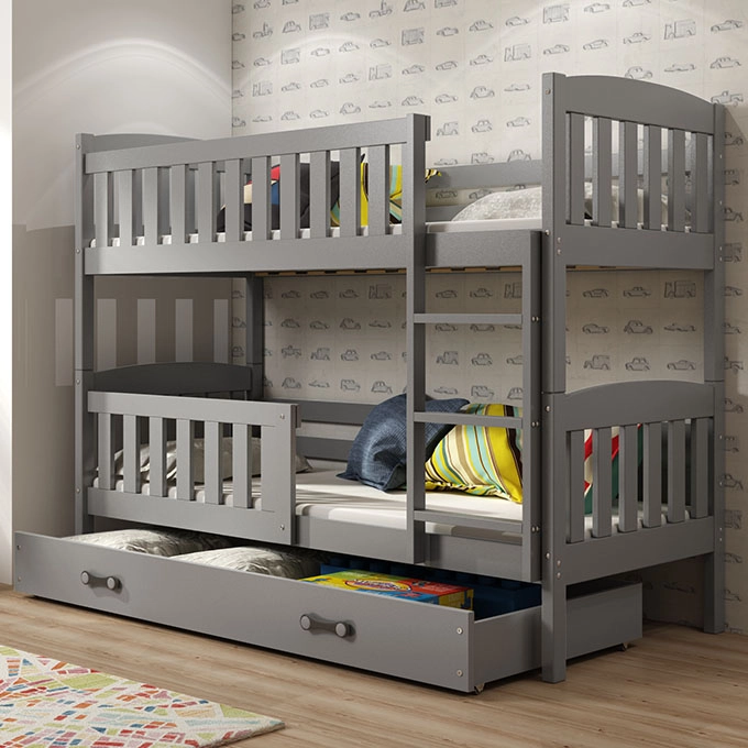 Emeletes ágy KUBUŚ 90X190 matraccal és fiókkal, grafit
