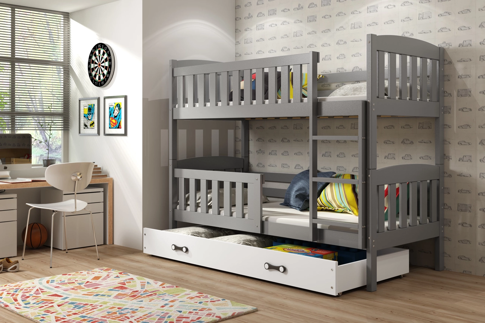 Emeletes ágy KUBUŚ 90X190 matraccal és fiókkal, grafit/fehér