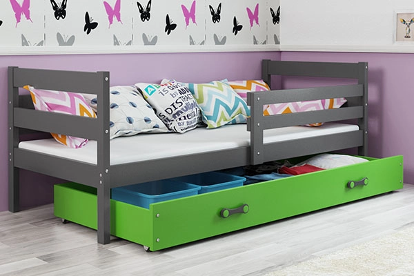 ERYK 80X190 egyszemélyes ifjúsági ágy fiókkal, grafit/zöld