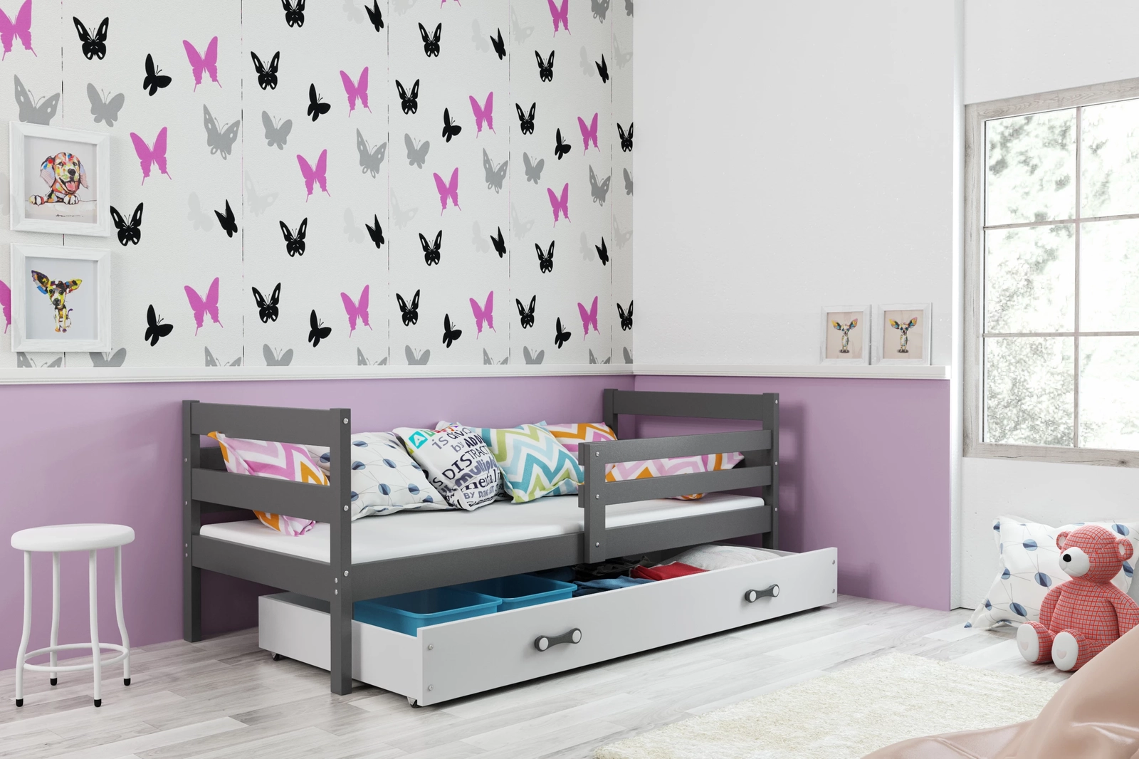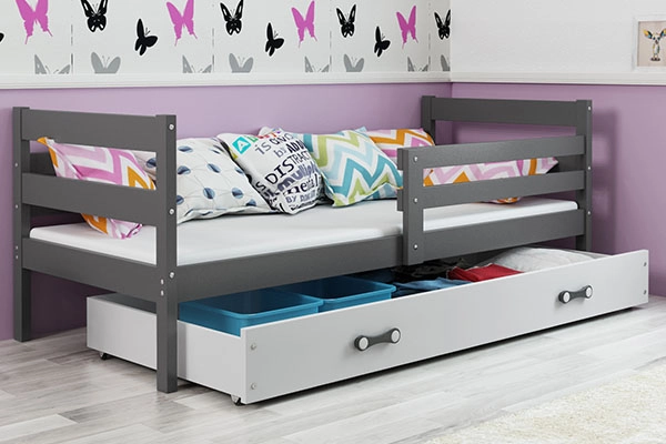 ERYK 80X190 egyszemélyes ifjúsági ágy matraccal és fiókkal, grafit/fehér