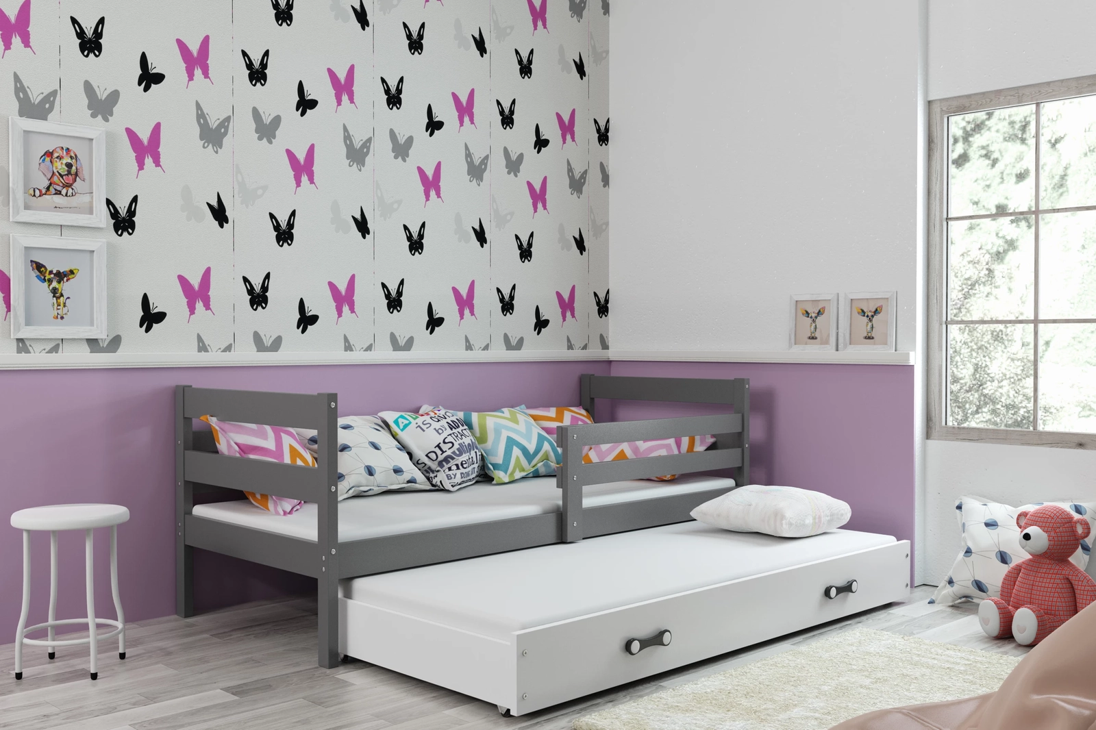ERYK 80X190 kihúzható ifjúsági ágy matraccal és fiókkal, grafit/fehér