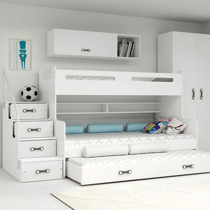 Háromszemélyes ifjúsági ágy MAX 3 120X200 matraccal és fiókkal, fehér színben