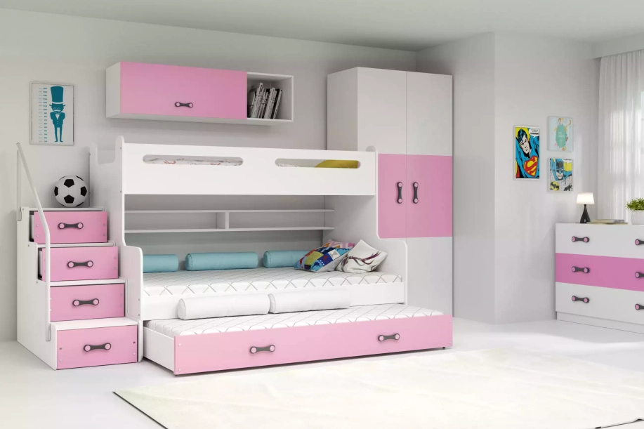 Háromszemélyes ifjúsági ágy MAX 3 120X200 matraccal és fiókkal, rózsaszínű