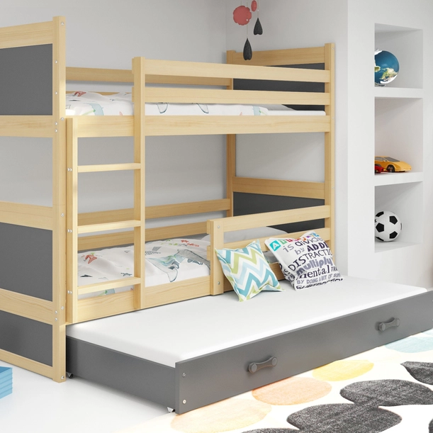 Háromszemélyes ifjúsági ágy RICO 90X200 matraccal és fiókkal, fenyő/grafit
