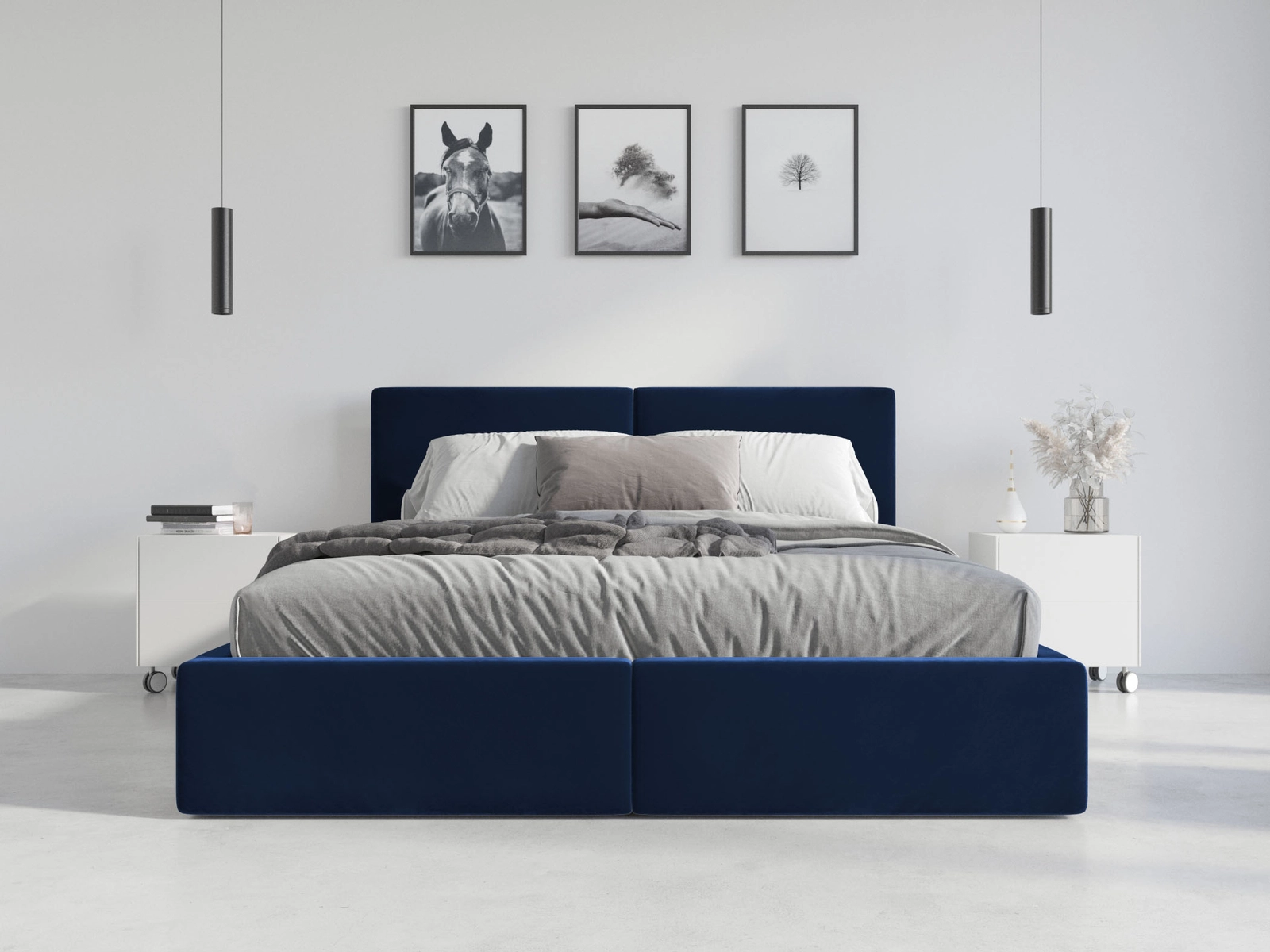 HILTON 140X200 kárpitozott hálószoba ágy, kék, tárolódobozzal