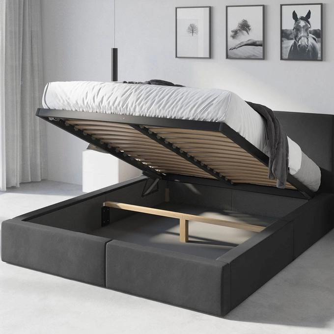 HILTON 140X200 kárpitozott hálószoba ágy, tároló doboz, grafit