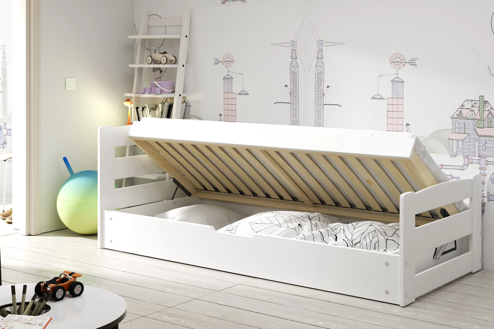 Ifjúsági egyszemélyes ágy ERNI 90X200 tárolódobozzal, fehér színben