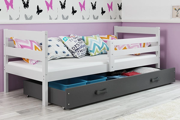 Ifjúsági egyszemélyes ágy ERYK 80X190 matraccal és fiókkal, fehér/grafit