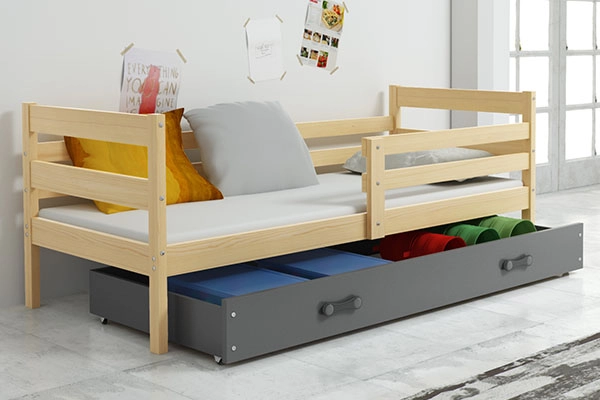 Ifjúsági egyszemélyes ágy ERYK 90X200 fiókkal, fenyő/grafit