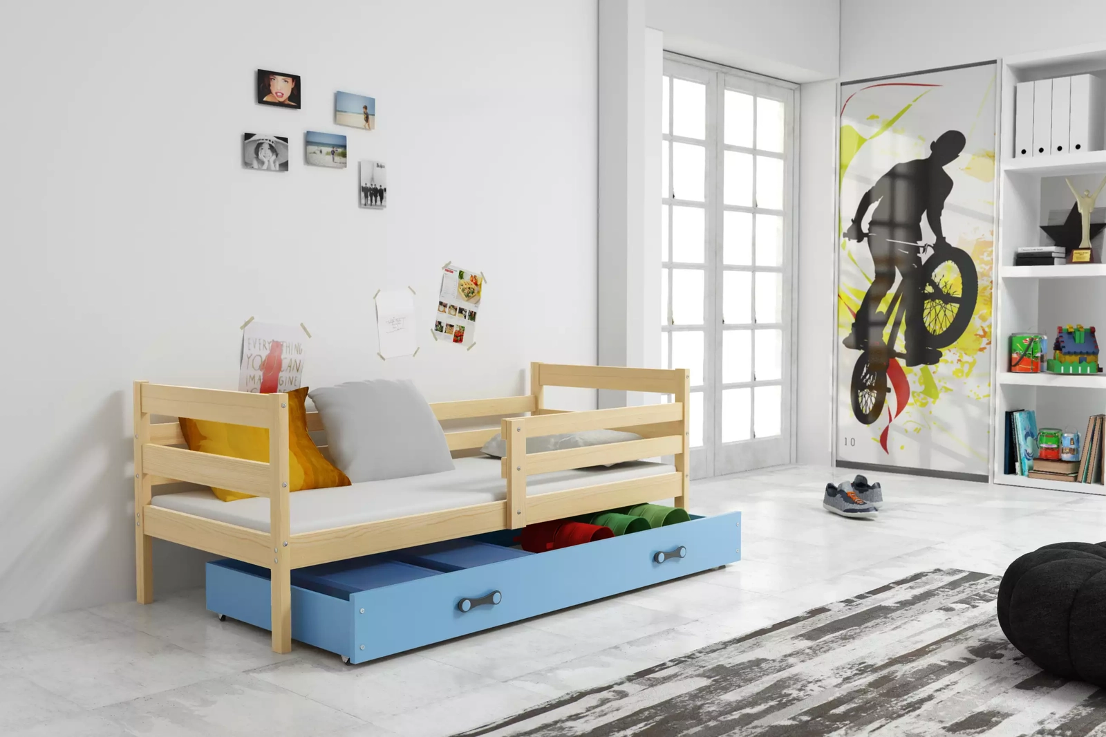 Ifjúsági egyszemélyes ágy ERYK 90X200 matraccal és fiókkal, fenyő/kék