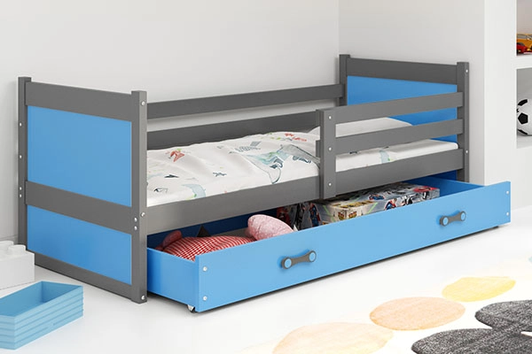 Ifjúsági egyszemélyes ágy RICO 90X200 fiókkal, grafit/kék