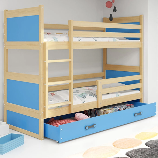 Ifjúsági emeletes ágy RICO 90X200 fiókkal, fenyő/kék