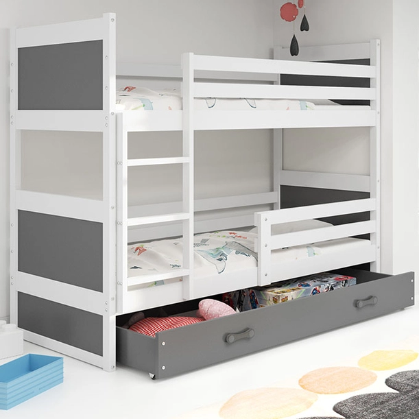 Ifjúsági emeletes ágy RICO 90X200 matraccal és fiókkal, fehér/grafit