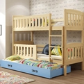 Jacquot 3 üléses tini emeletes ágy 90x190 fiókkal, fenyő/kék