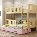 Jacquot 3 üléses tini emeletes ágy 90x190 fiókkal, fenyő/rózsaszín, Jacquot 3 üléses emeletes ágy 90x190 fiókkal, fenyő/rózsaszín