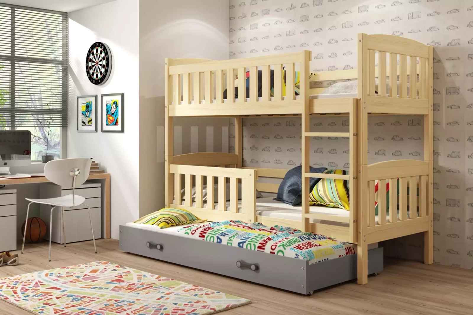 Jacquot 3 üléses tini emeletes ágy 90x190 fiókkal, fenyőszürke/szürke