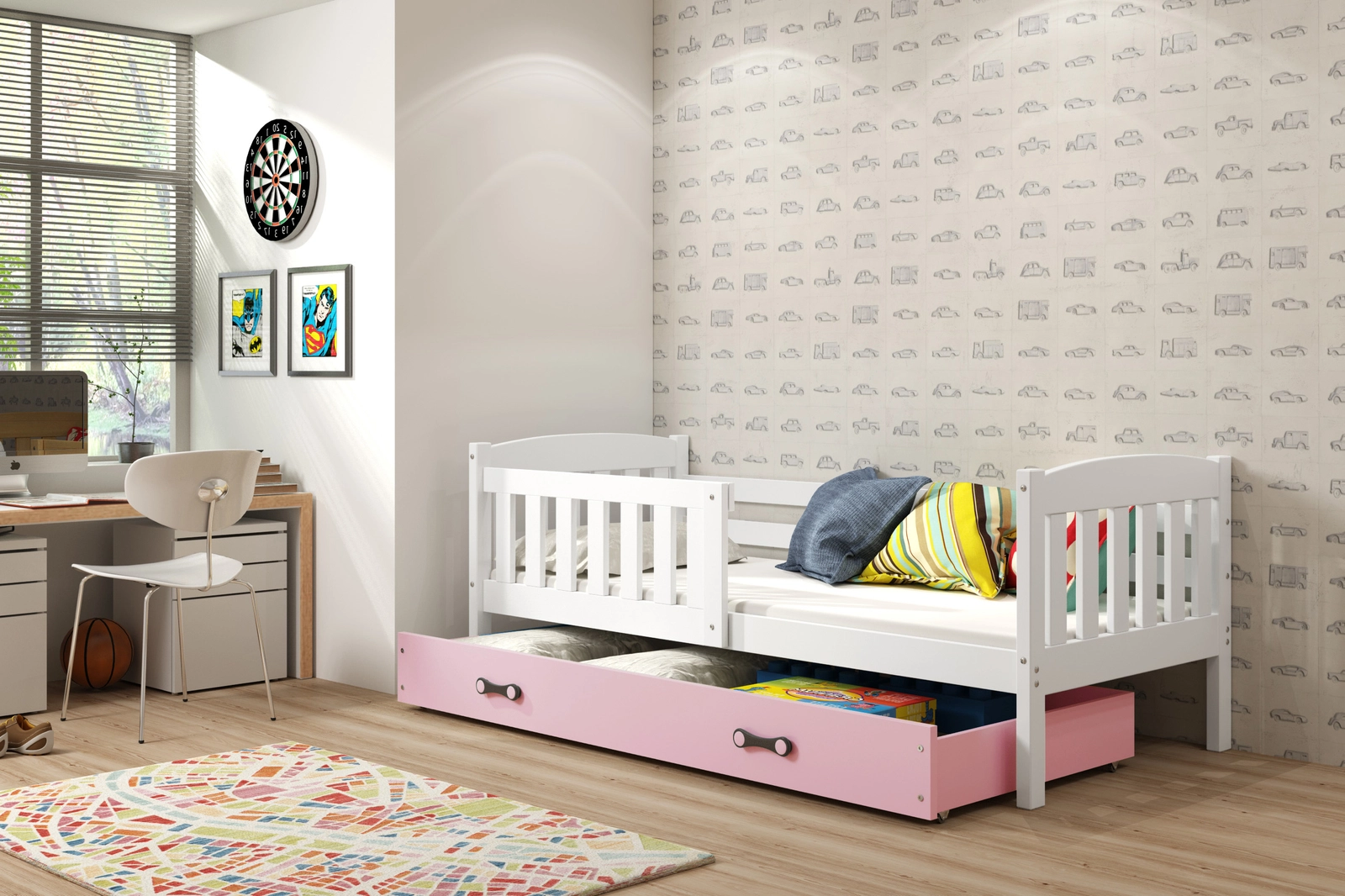 Jacquot 90x190 egyszemélyes tiniágy matraccal és fiókkal, fehér/rózsaszín