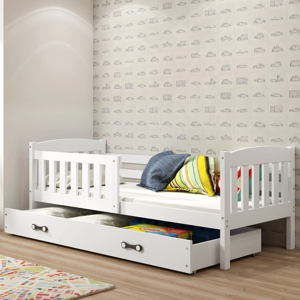 Jacquot 90x190 egyszemélyes tiniágy matraccal és fiókkal, fehér színben