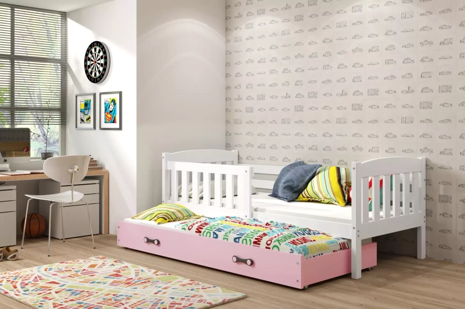 Stabil és masszív fenyőfa szerkezetének köszönhetően nemcsak az alvást, hanem a gyermekek szinte minden játékát is kibírja az évek során. A felső fekhelyen egy további korlát védi a gyermeket, így ez a rész alkalmas kisebb gyermekek számára. A nagy kincs ezután tágas és rendkívül kényelmes helyet kap a csúszó fiókon. Mindkét helyszín egyformán kényelmes és biztonságos. Rugalmas, fából készült lécbetétes alappal vannak ellátva, amely növeli az alvás kényelmét és megkönnyíti a helyes pozícionálást, aminek köszönhetően a szerkezet védi a gerincoszlopot. Ez egy befektetés az egészségükbe most és a jövőben.