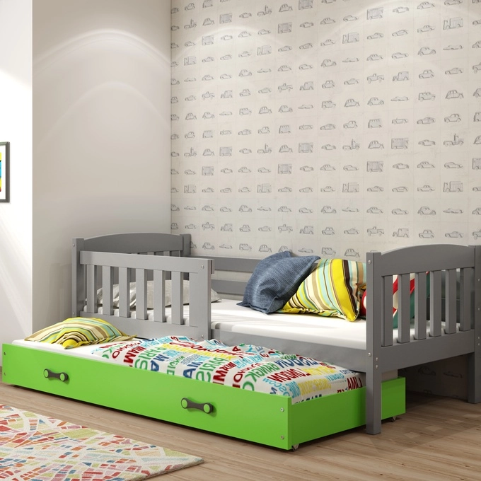 Jacquot 90x190 tini franciaágy fiókkal, szürke/zöld