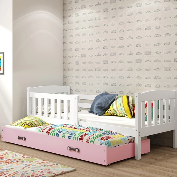 Jacquot 90x190 tini franciaágy matraccal és fiókkal, fehér/rózsaszín
