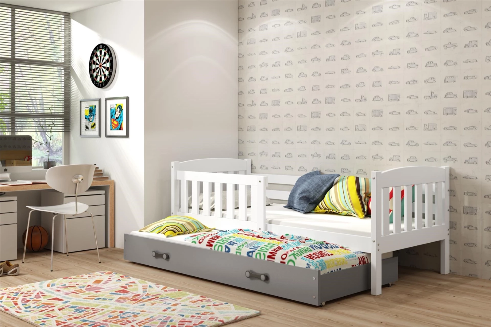 Stabil és masszív fenyőfa szerkezetének köszönhetően nemcsak az alvást, hanem a gyermekek szinte minden játékát is kibírja az évek során. A felső fekhelyen egy további korlát védi a gyermeket, így ez a rész alkalmas kisebb gyermekek számára. A nagy kincs ezután tágas és rendkívül kényelmes helyet kap a csúszó fiókon. Mindkét helyszín egyformán kényelmes és biztonságos. Rugalmas, fából készült lécbetétes alappal vannak ellátva, amely növeli az alvás kényelmét és megkönnyíti a helyes pozícionálást, aminek köszönhetően a szerkezet védi a gerincoszlopot. Ez egy befektetés az egészségükbe most és a jövőben.