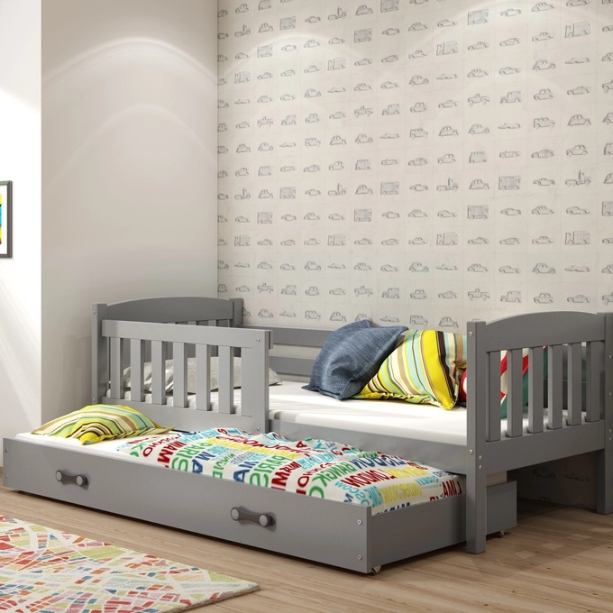 Stabil és masszív fenyőfa szerkezetének köszönhetően nemcsak az alvást, hanem a gyermekek szinte minden játékát is kibírja az évek során. A felső fekhelyen egy további korlát védi a gyermeket, így ez a rész alkalmas kisebb gyermekek számára. A nagy kincs ezután tágas és rendkívül kényelmes helyet kap a csúszó fiókon. Mindkét helyszín egyformán kényelmes és biztonságos. Rugalmas, fából készült lécbetétes alappal vannak ellátva, amely növeli az alvás kényelmét és megkönnyíti a helyes pozícionálást, aminek köszönhetően a szerkezet védi a gerincoszlopot. Ez egy befektetés az egészségükbe most és a jövőben.