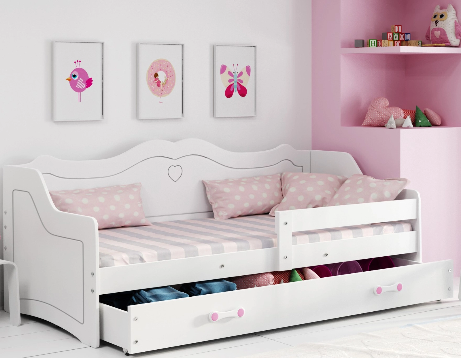 Julia egyszemélyes ágy 80X160 fiókkal, fehér színben