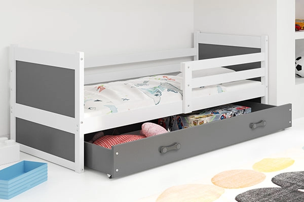 Junior egyszemélyes ágy RICO 80X190 fiókkal, fehér/grafit