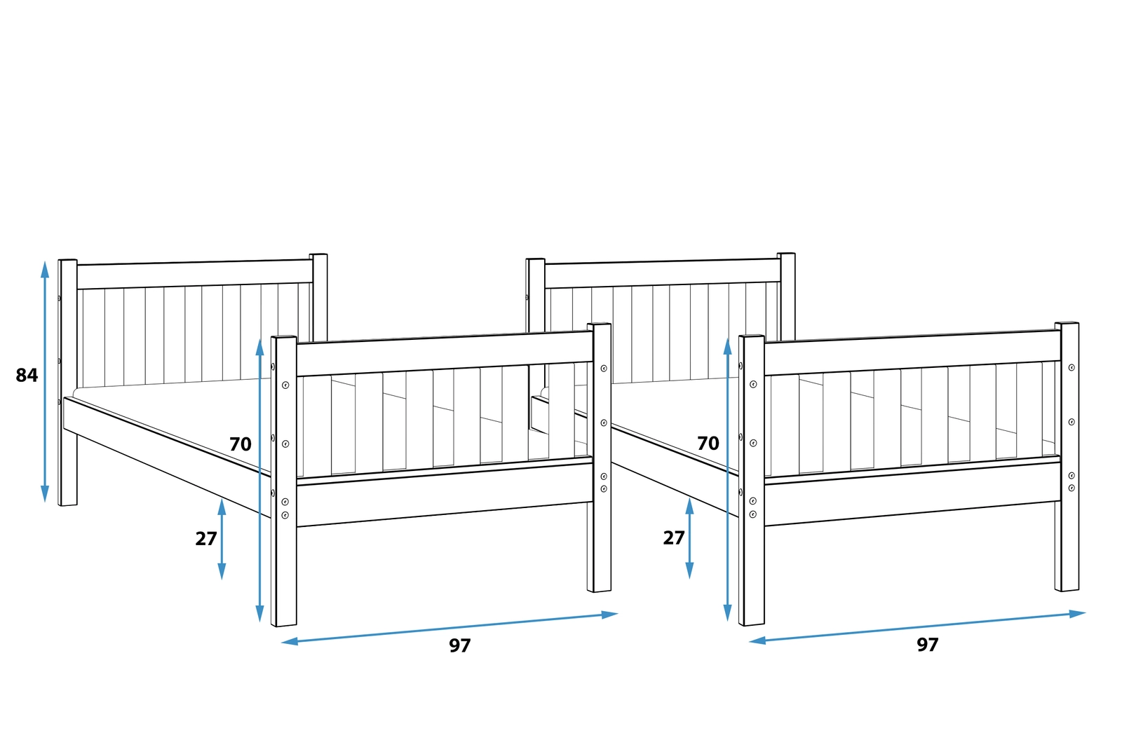 Igényeitől függően a Kacper ágyat emeletes ággyá szerelheti össze, vagy bármikor két egyszemélyes ággyá alakíthatja.