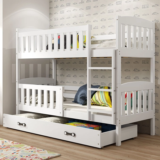 Junior emeletes ágy KUBUŚ 90X190 matraccal és fiókkal, fehér színben