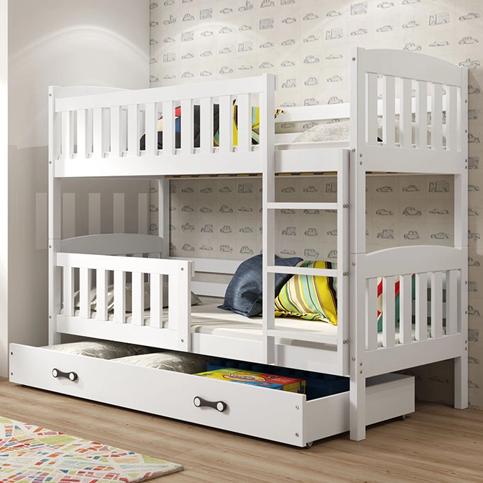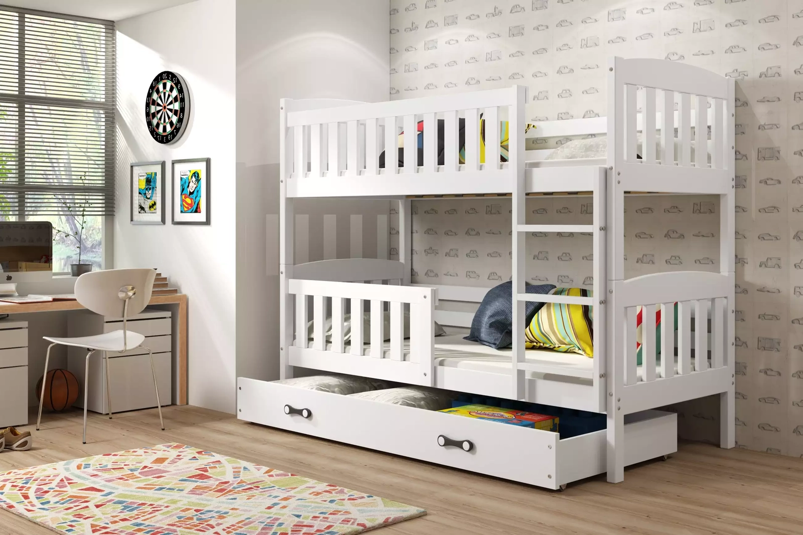 Junior emeletes ágy KUBUŚ 90X200 fiókkal, fehér színben