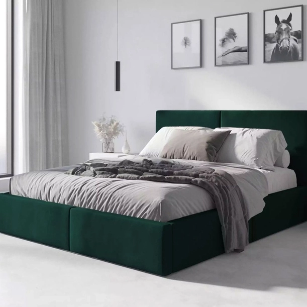 - A 120x200-as kárpitozott ágy kiváló választás azoknak, akik értékelik a stílust és a kényelmet. Kiváló minőségű laminált kartonból készült, zöld kárpitozással. Az ágynak nincs tárolója.