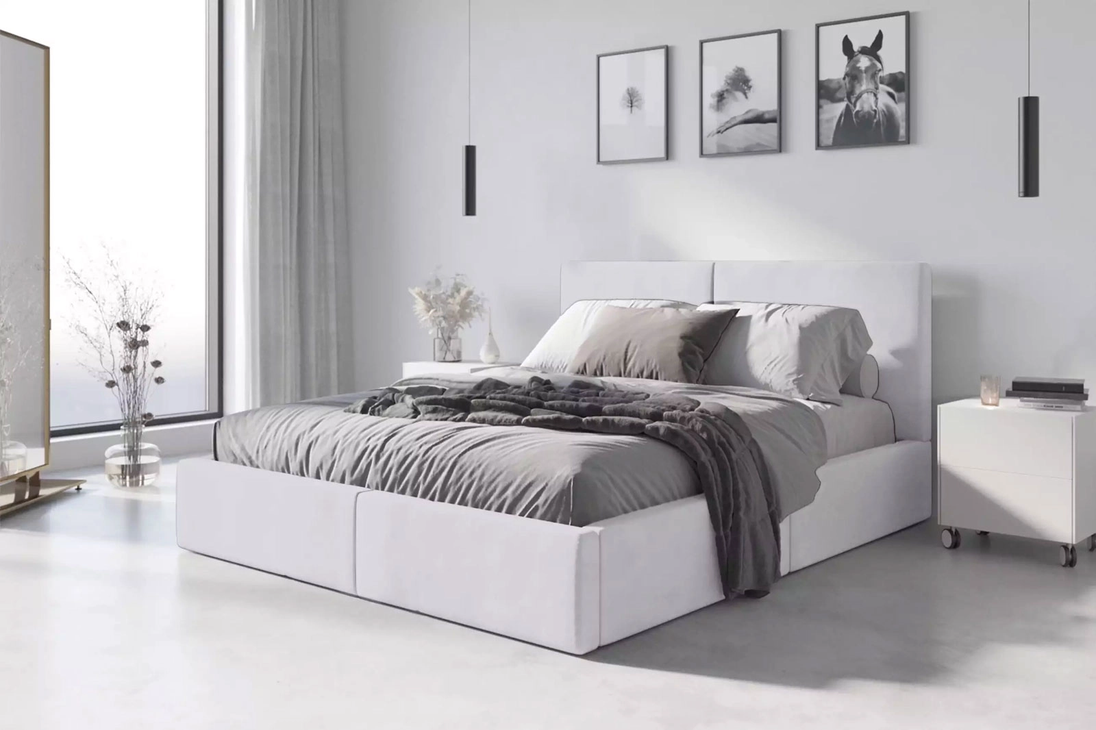 Ezt a kárpitozott hálószobaágyat a kényelem és a könnyű használat jegyében tervezték. A felhasználóbarát összeszerelési rendszernek köszönhetően gyorsan és egyszerűen összeszerelhető, akár egyedül is. A jól átgondolt kialakítás megfelelő alátámasztást biztosít, a gondosan kiválasztott anyagok pedig könnyűvé teszik a gondozást - a fehér kárpit megfelelő, rendszeres karbantartás mellett megőrzi friss megjelenését. A matrac hiánya a készletben teljes szabadságot biztosít Önnek a keménység és a töltési technológia megválasztásában, hogy az alvásérzetet tökéletesen az Ön preferenciáihoz igazítsa. Ha olyan bútordarabot keres, amely ötvözi a hangulatos jelleget a minimalista stílussal, a 140x200-as kárpitozott ágy kiváló választás lesz, harmonikus alapot teremtve egy egységes, elegáns hálószoba elrendezéséhez.