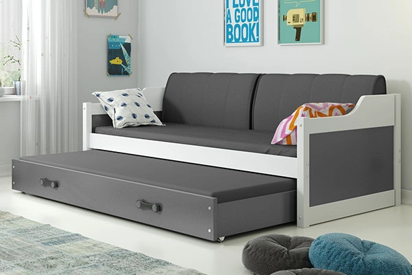 Fehér váz grafit kivitelben, egyszerű, de rendkívül ízléses formák és kiváló használati kényelem - a Dawid fiókos ágy biztosan tetszeni fog a gyerekeknek. Nagyszerű egy kétszemélyes szobában, de kényelmes megoldás lehet egy olyan gyermek hálószobájában is, aki gyakran látja vendégül barátait vagy unokatestvéreit.