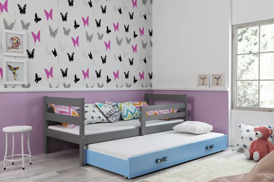 Kihúzható ifjúsági ágy ERYK 80X190 fiókkal, grafit/kék