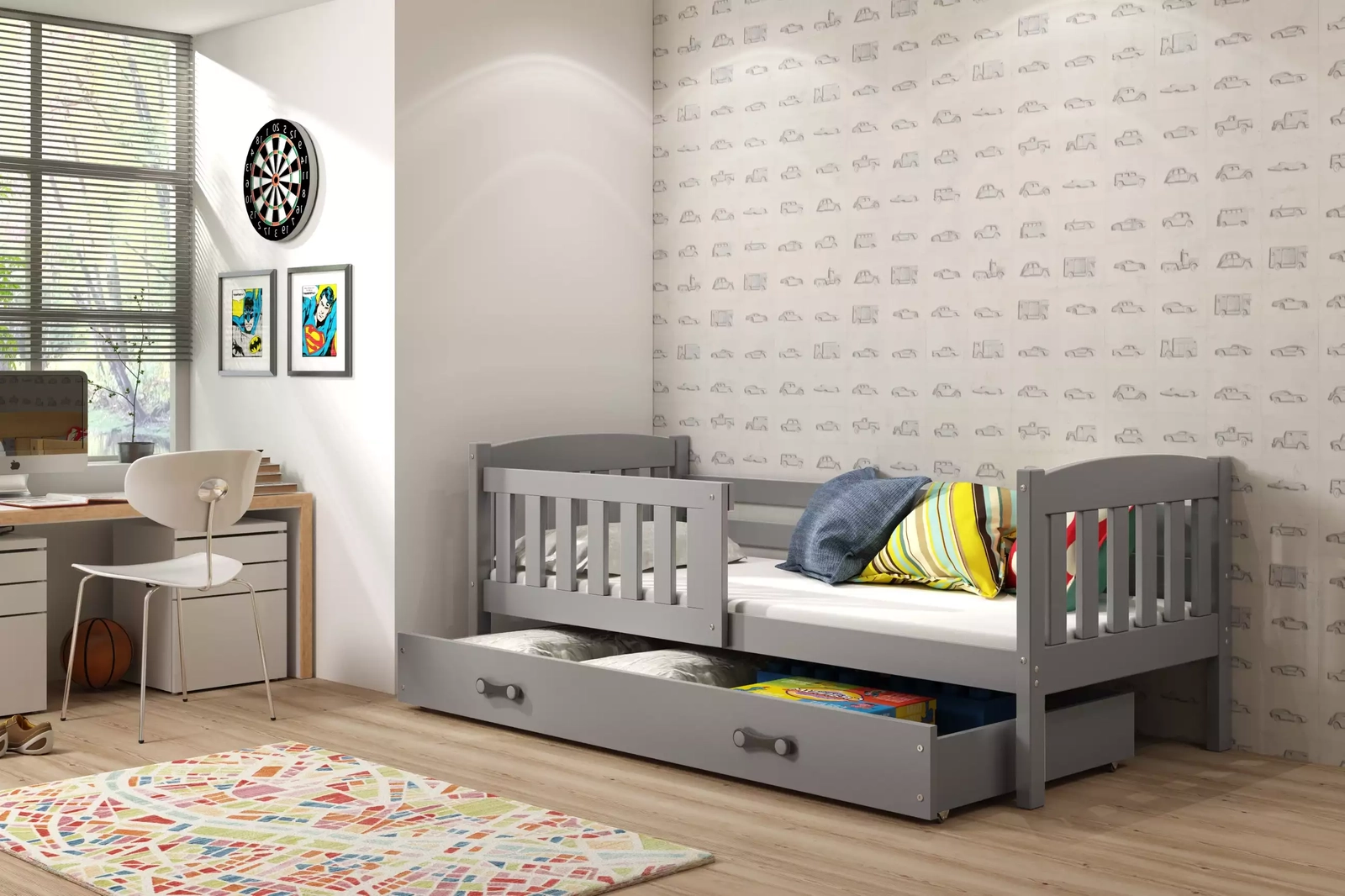 KUBUŚ 80X160 egyszemélyes ágy matraccal és fiókkal, grafit