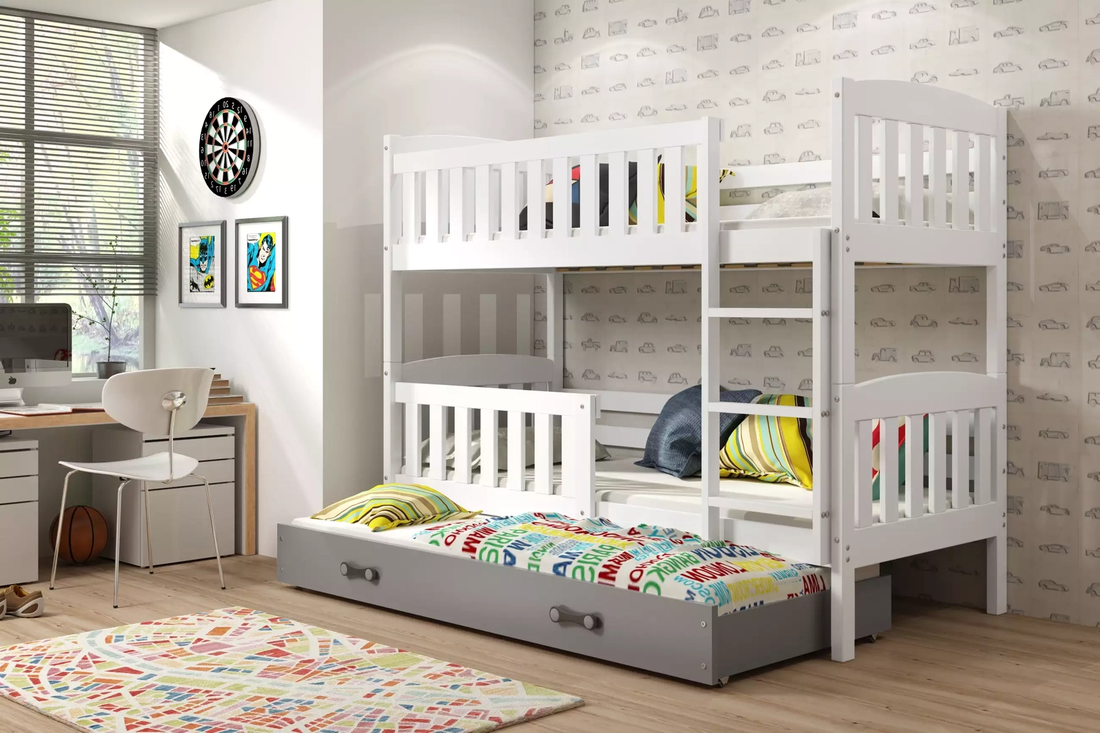KUBUŚ 90X190 háromszemélyes ágy fiókkal, fehér/grafit