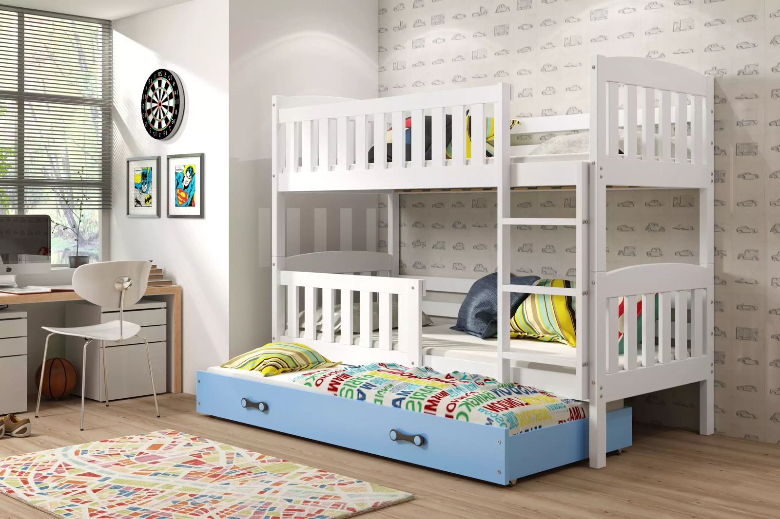 KUBUŚ 90X190 háromszemélyes ágy fiókkal, fehér/kék