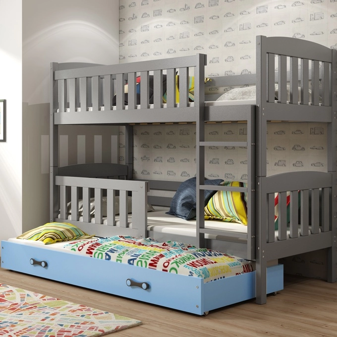 KUBUŚ 90X190 háromszemélyes ágy fiókkal, grafit/kék
